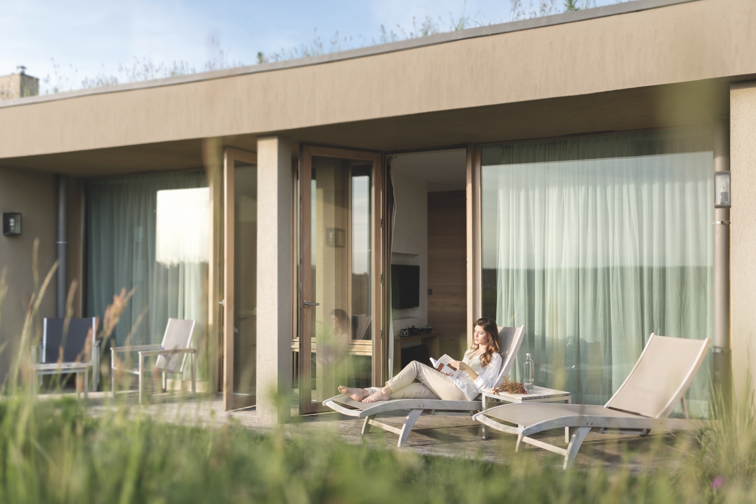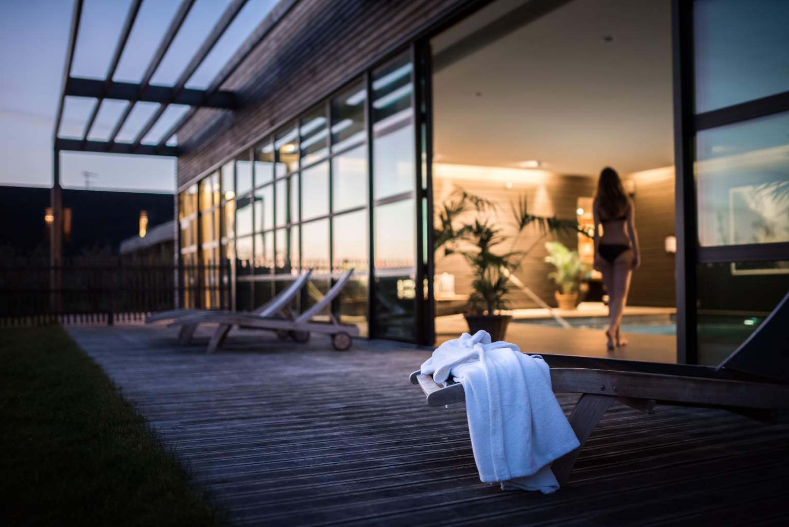 Terrasse de la piscine de l'Espace Wellness